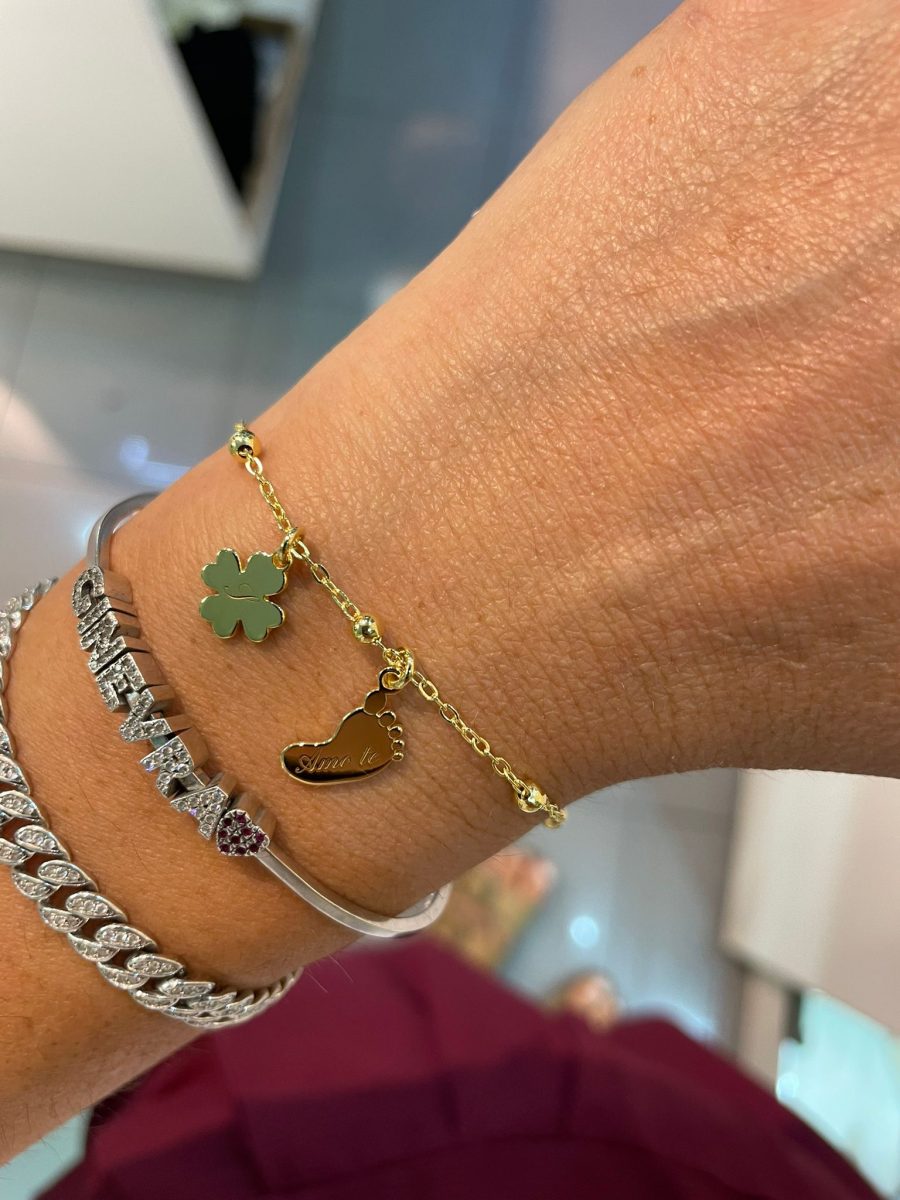 Bracciale con ciondolino piedini e quadrifoglio