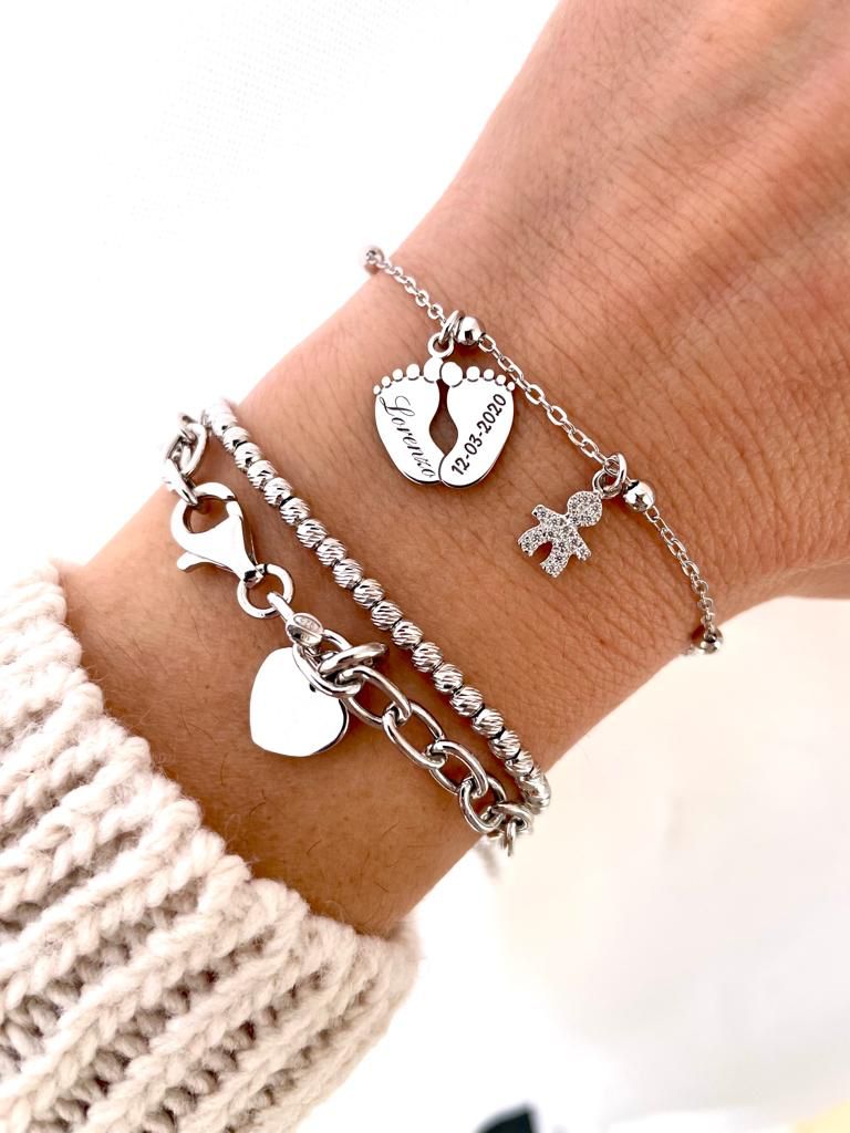 Bracciale mini ciondoli bimbo o bimba con zirconi e ciondolino piedini doppi.