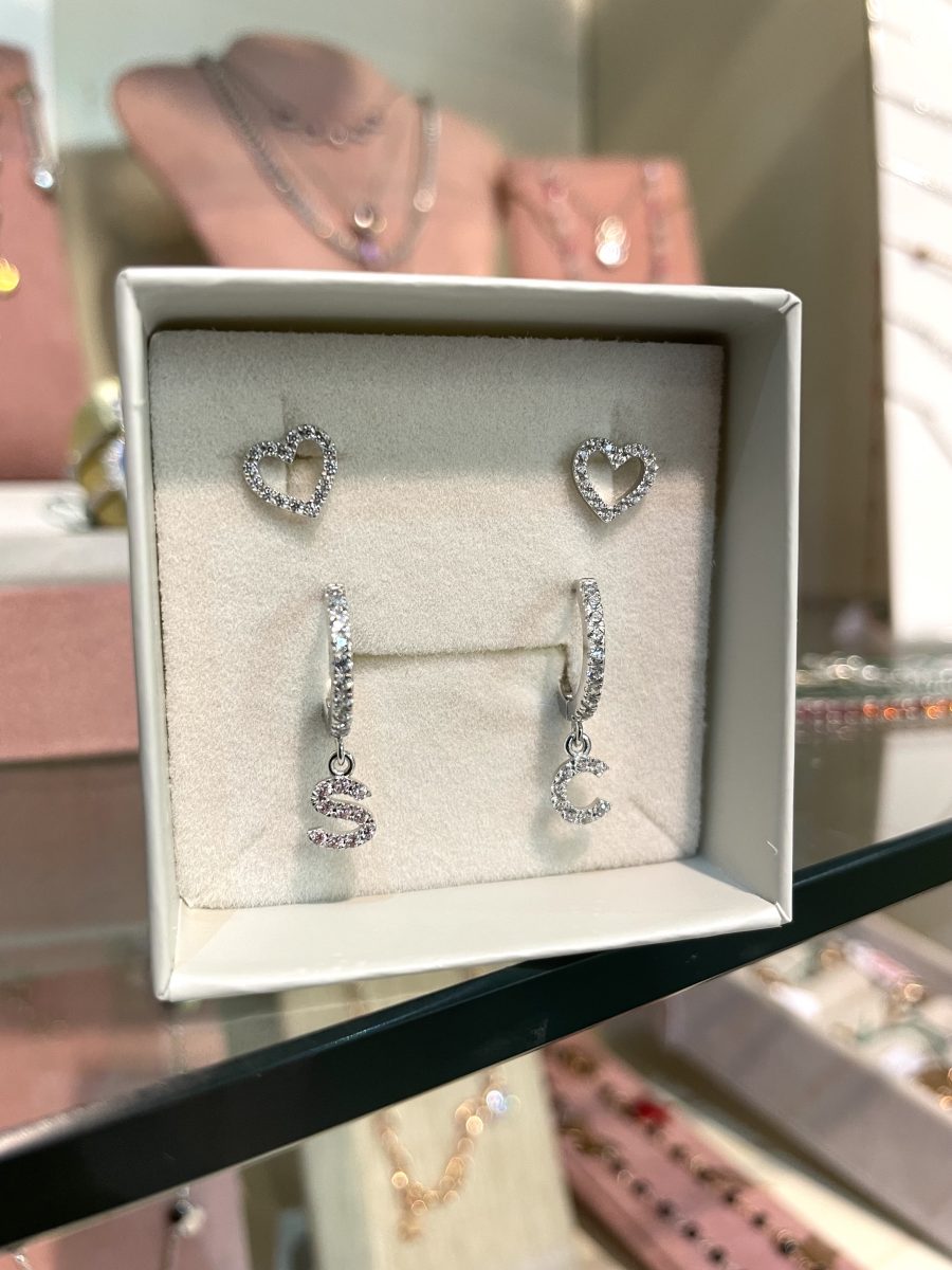 Cerchietti con zirconi bianchi mm interno 1cm, letterina ciondolo con zirconi bianchi