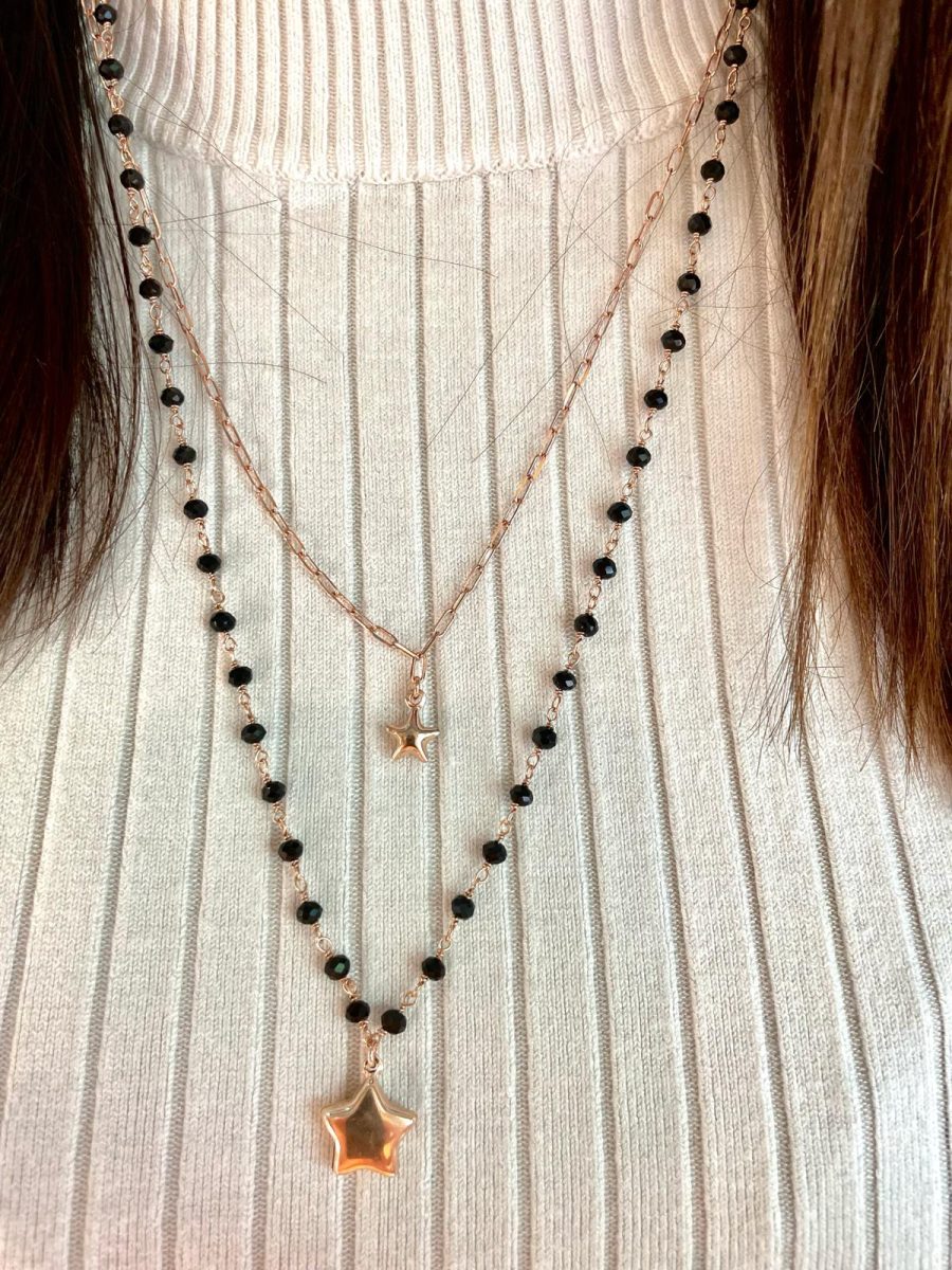 Le due catene sono uniti insieme e hanno un ciondolino mini stella bombata e un ciondolo stella maxi.